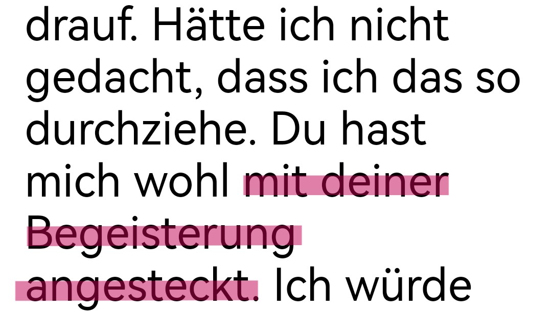 Am besten gefallen hat mir am online Format, dass keiner schräg rüber schaut und dass ich einfach die Stunde nochmal machen kann, wenn ich Zeit habe.