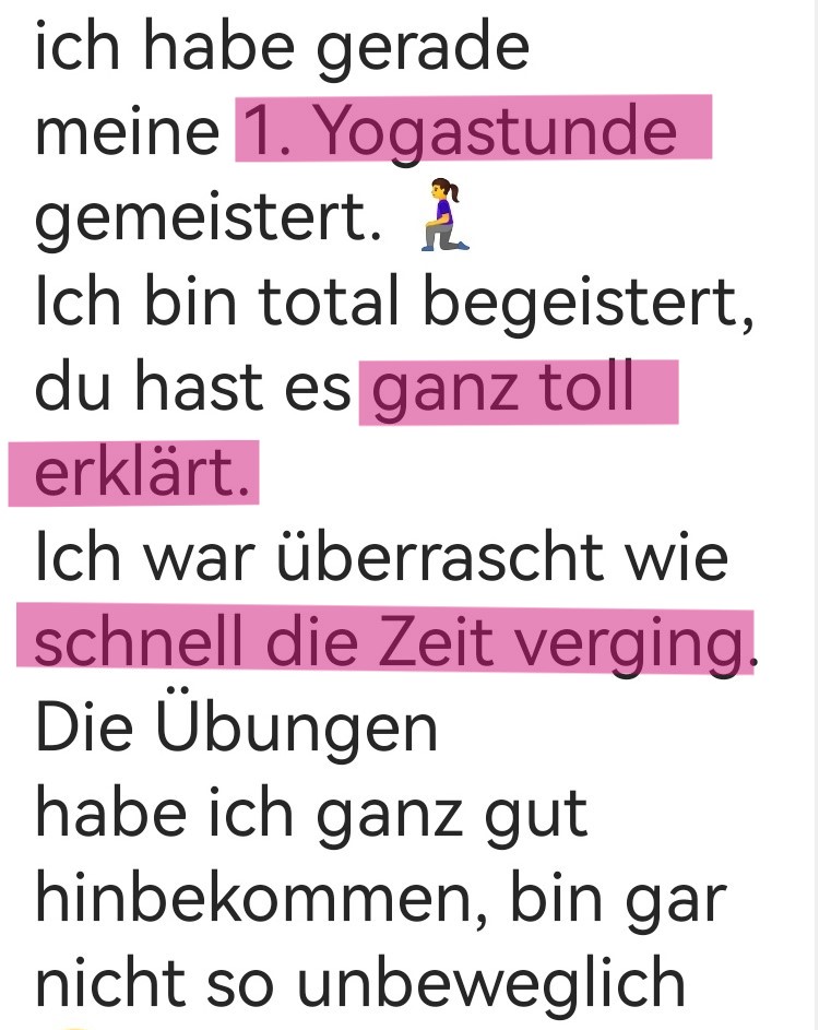 Blöderweise habe ich mir Fehler angewöhnt und hatte nach dem Yoga oft Rückenschmerzen. Die wären vermeidbar gewesen, wenn ich den richtigen Kurs und einen Ansprechpartner gehabt hätte.